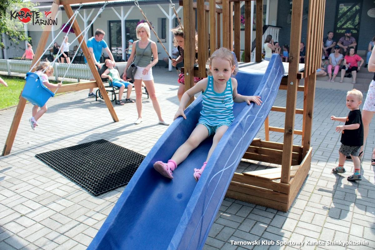 W dniu 9 czerwca (niedziela) odbył się Klubowy Dzień Dziecka w którym wzięli udział członkowie naszego klubu wraz z rodzinami. Wszyscy razem bawiliśmy się w Domu Weselnym „Tarnowianka”, gdzie znajdowała się trampolina, zamek dmuchany oraz atrakcje przygotowane przez instruktorów. Atmosfera była pełna radości i szaleństw, a każdy karateka został poczęstowany kiełbaską oraz napojem. Nie zabrakło też pysznych ciast które upiekły wspaniałe mamy 🙂 Mamy nadzieje że się podobała a wyżej znajduje się krótka fotorelacja. Zapraszamy za rok 🙂 OSU!