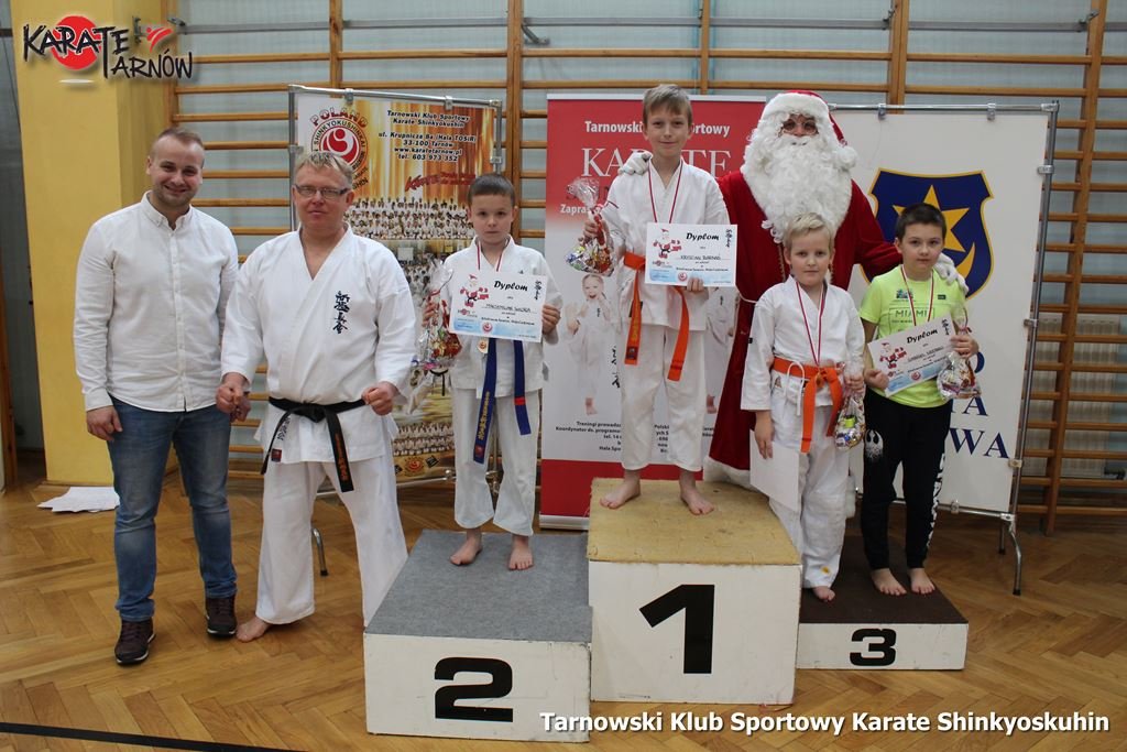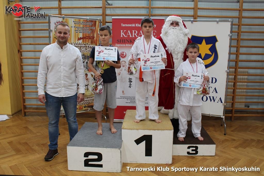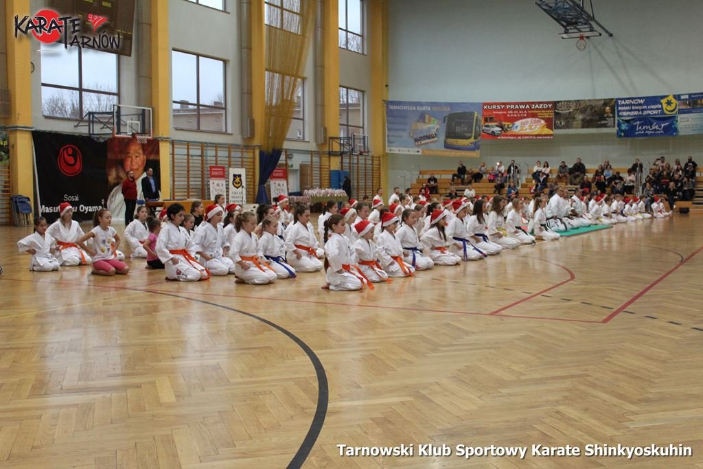 Klubowy Mikołajkowy Turniej Karate Shinkyokushin zorganizowany dla dzieci naszego klubu w dniu 8 grudnia 2018r (sobota) na hali TOSiRu. Udział wzięło 140 zawodników, którzy w zawodach „sumo” walczyli między sobą w różnych kategoriach. Współorganizatorem był Urząd Miasta Tarnowa oraz hala TOSiR.
