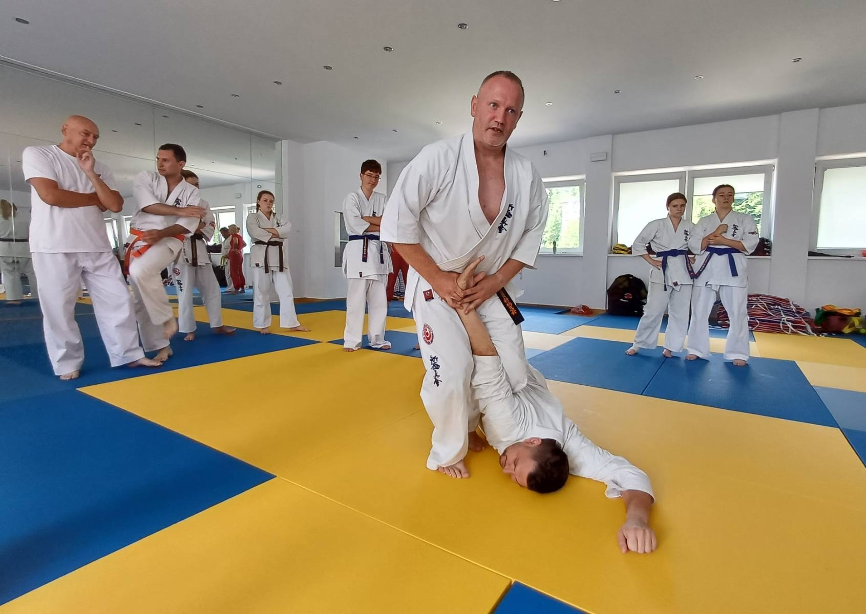 Następnie odbył się trening przygotowawczy do egzaminu, który pozwolił uczestnikom skupić się na doskonaleniu technik i zwiększeniu swoich szans na pozytywne zaliczenie testu, a pozostali zasiedli do wieczoru kinowego, który przyniósł chwilę wytchnienia i rozrywki po intensywnym dniu. 🥋