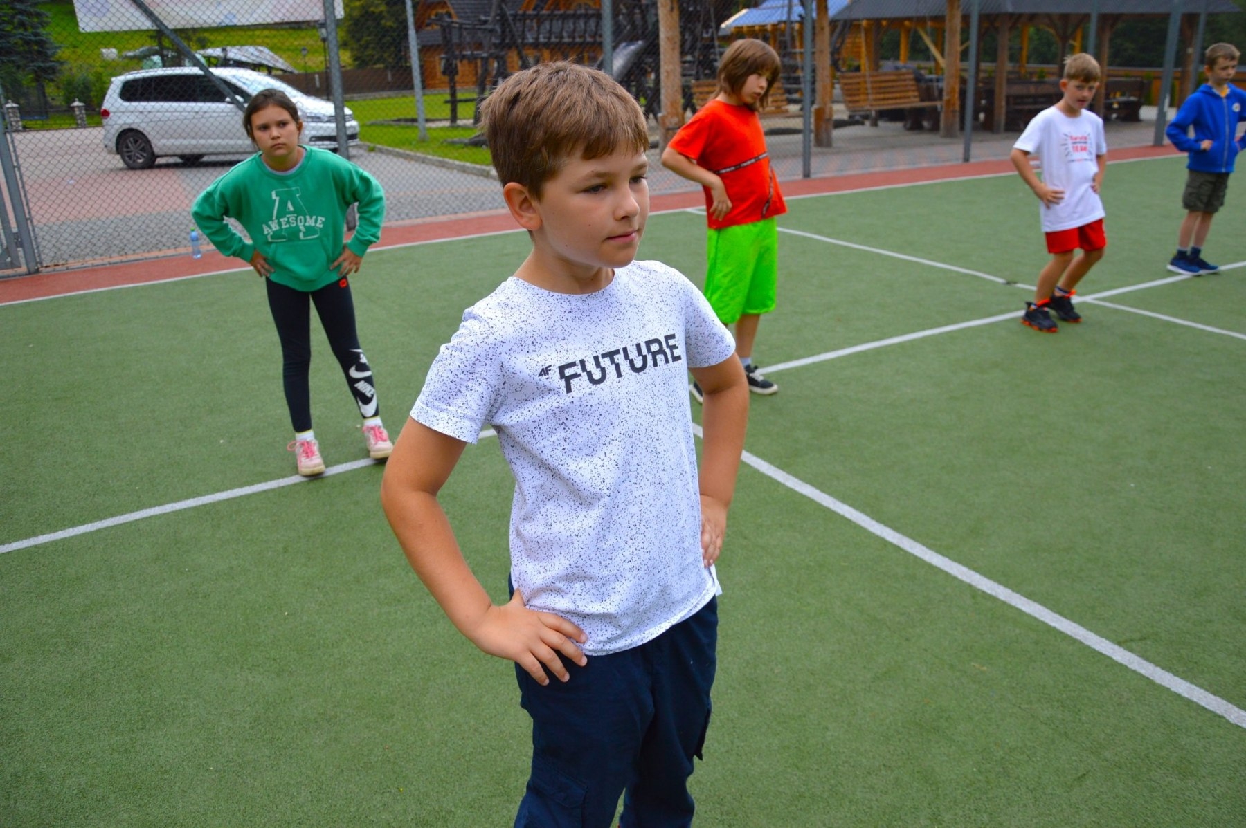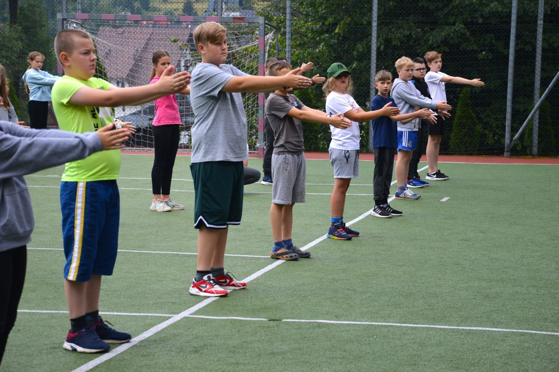Dzień rozpoczęty tradycyjnie od porannego rozruchu, następnie odbyły się zajęcia na basenie, a także gry i zabawy na boisku.
