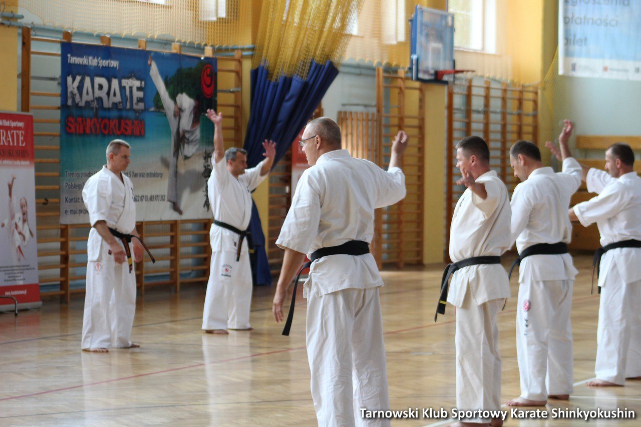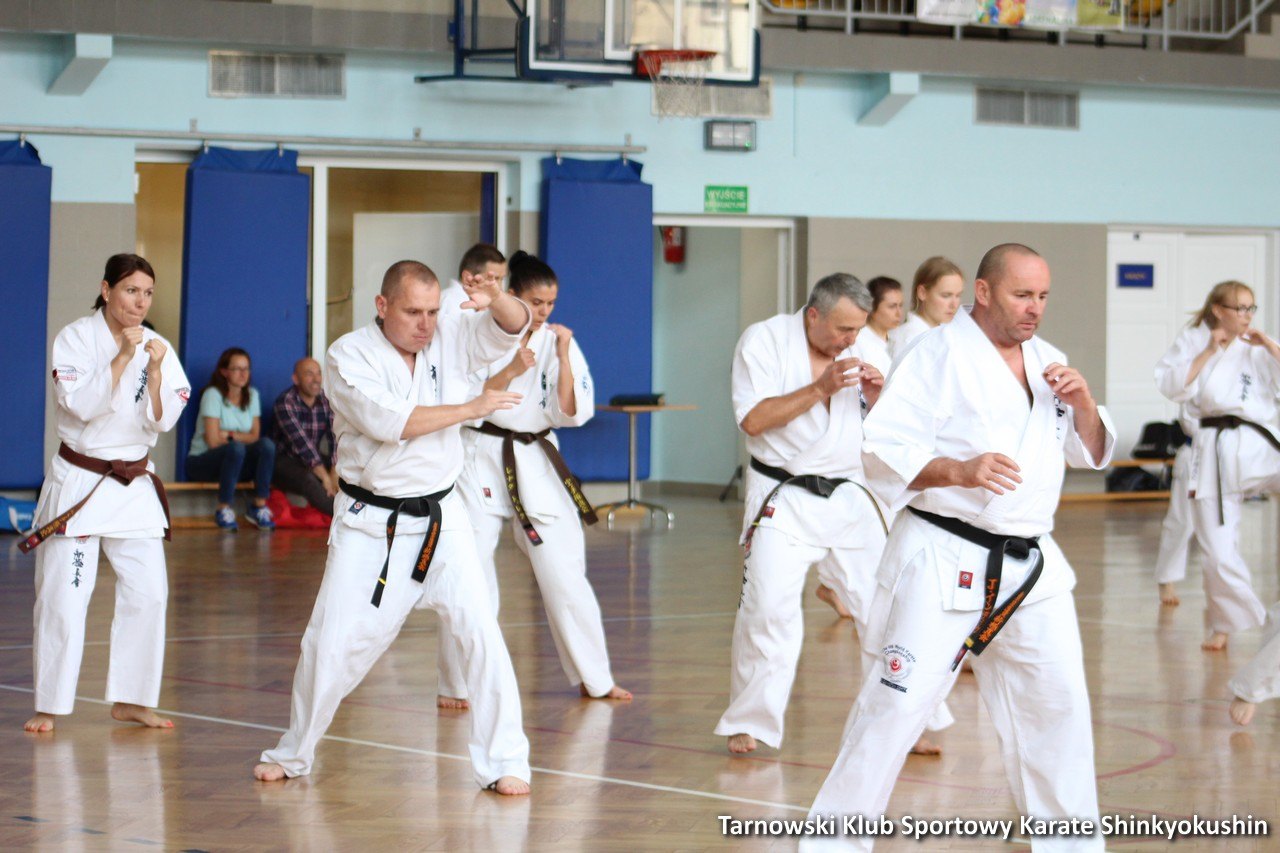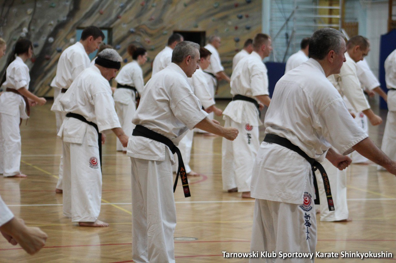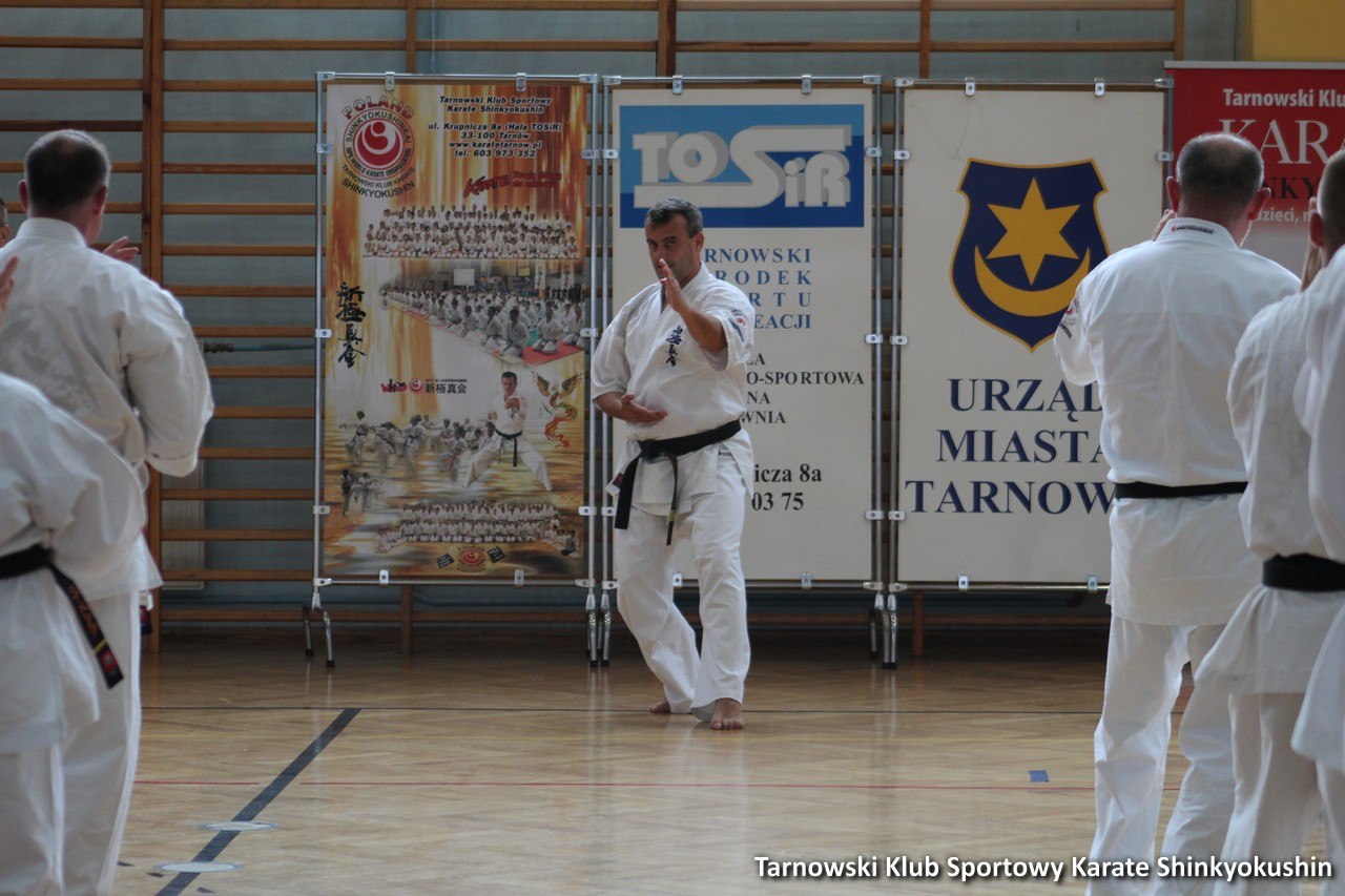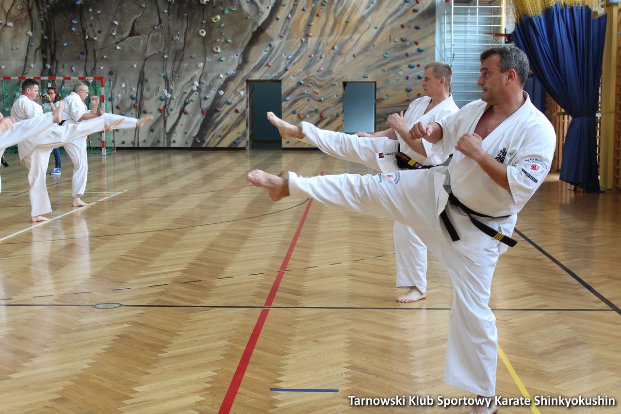 W dniu 23 czerwca po uroczystym odsłonięciu tablicy Ś.P. shihana W. Gwizda 5 dan odbył się trening ku jego pamięci w którym udział brało blisko 50 osób. Godzinny trening poprowadzili shihan Remigiusz Karpiński 6 dan oraz sensei Wojciech Radziewicz 4 dan. Podczas treningu zostało wykonane 58 tsuki dla zmarłego shihana Wiesława Gwizda (shihan zmarł mając 58 lat, dlatego 58 tsuki z okrzykiem KIAI). Bardzo wielką ciekawostką było tuż zaraz (kilka sekund) po zakończeniu 58 tsuki i wykonaniu OSU obok hali strzelił potężny piorun. Czyżby to znak i podziękowanie od shihana za pamieć o nim? 🙂